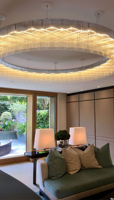 حداقل ۲۱۰ سانتیمتر فاصله از کف تا پایینترین نقطه لوستر باید رعایت شود.
