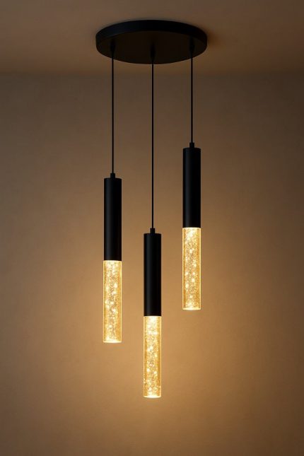 لوستر آویز مدرن سه شاخه گرد استوانه اي حبابدار(لونور)