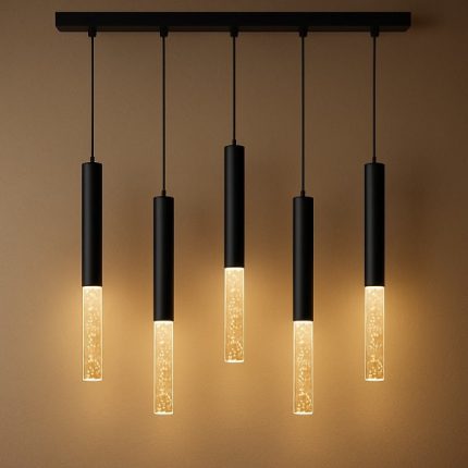 لوستر آویز مدرن پنج شاخه خطي استوانه اي حبابدار(لونور)