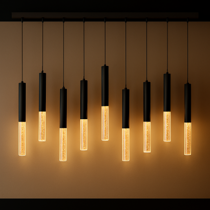 لوستر آویز مدرن نه شاخه خطي استوانه اي حبابدار(لونور)